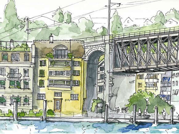 In Yverdon treffen wir uns einmal im Monat, donnerstags, von 12 bis 13.30 Uhr, zu unserem kreativen Sketching-Event.