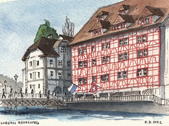 Die Luzerner Urban Sketcher treffen sich jeweils am letzten Sonntag im Monat, von 10 bis 12 Uhr, irgendwo in Luzern oder in der Zentralschweiz. Ausgeschrieben werden die Treffen unter Events, auf Social Media oder auf der Website usk-luzern.ch